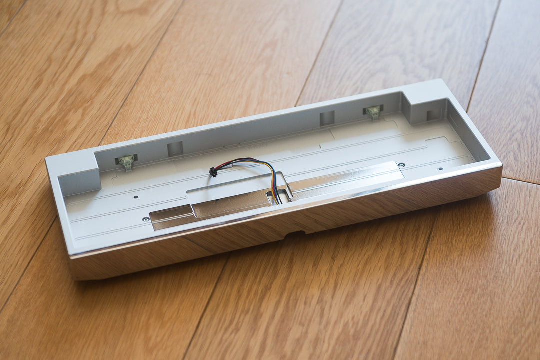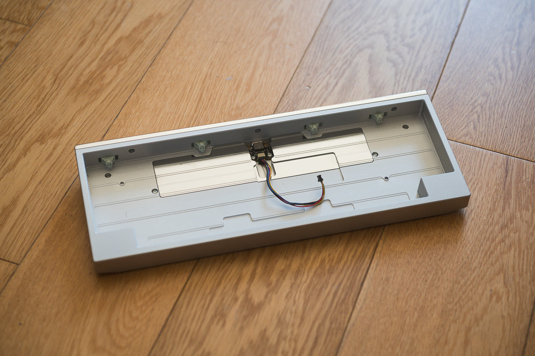 Note that one of the two screw holes on the case (used to mount the PCB-plate assembly into the case) is stripped. Mode support has suggested that these screws are merely optional, and nearly every build stream viewer agreed that it sounded better without either screw.